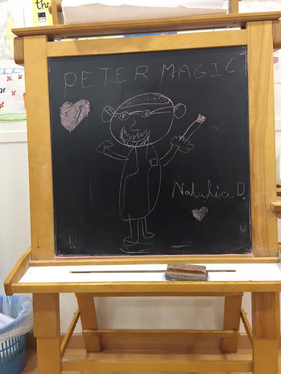 Llamamos a Peter y genial!!, estuvo todo el mundo la mar de entretenido, nos amenizo la comida y tuvo a la gente preguntándose como había echo tal o cual cosa el resto del día!.
